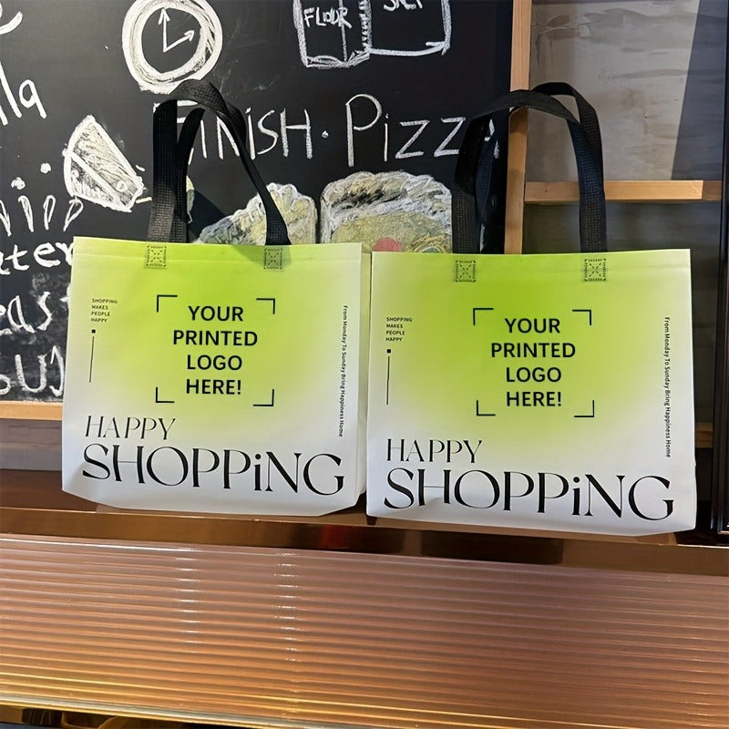 50-Pack Custom Single-Color Printed Tote Bags with Handles, Reusable Non-Woven Shopping Bags – Glossy Party Gift Bags for Mother’s Day, Bridesmaid Gifts, Birthdays, Weddings & Valentine’s Day